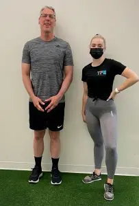 Gary joined TFE in June right when TFE reopened after quarantine. He has always been involved in fitness, but when Covid hit Gary needed a gym close to his home. He came in for his free fitness assessment in August to get a better understanding of his fitness level, goals, and what he wanted to accomplish. After that, he started working with Sara, our Assistant Fitness Director, on his mobility, functional training, and strength training. Gary sits all day at work and looks forward to his weekly sessions with Sara. In addition to increasing strength & mobility, injury prevention was one of Gary’s top goals. He is an avid Ultimate Frisbee player in addition to his time at the gym, therefore Sara and Gary wanted to build up strength and resilience for the fast paced and unpredictable environment of the sport.