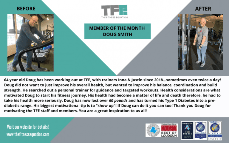 Doug from One Loudoun is our TFE October Member of the Month! Doug is 64 years old and has been working out at